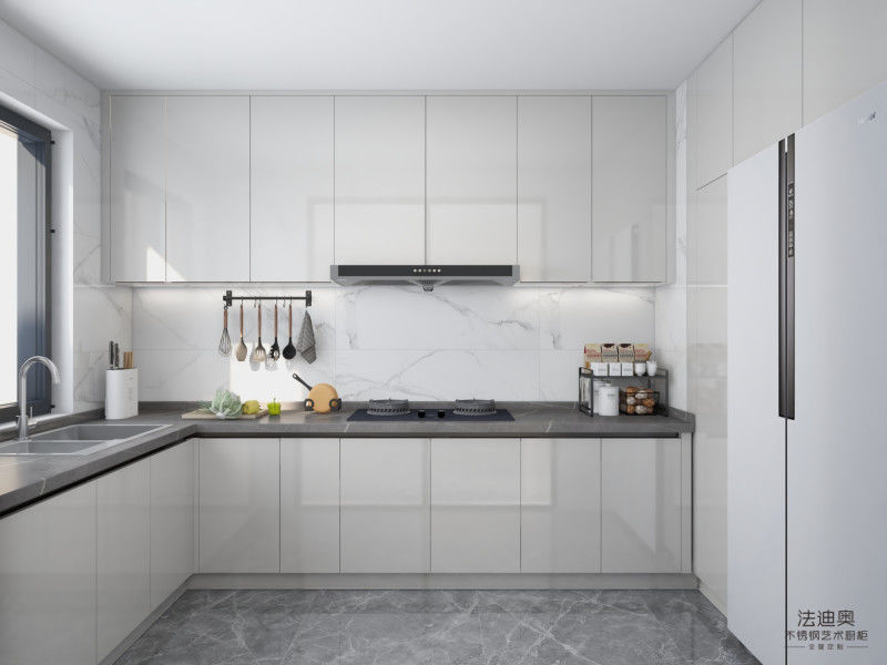 فاديور يضع هذه الخزانة المطبخية كحل مصمم خصيصا للمشترين الذين يحتاجون إلى أكثر من التشطيب الكتالوج. الصفحة تركز الآن على هيكل الخزانة الفولاذ المقاوم للصدأ، تخطيط تخطيط،وتخزين واسع مع خزانات بيضاء رقيقة، مصممة لاستخدام الفضاء الأمثل حتى يمكن تقييم المورد أن يحدث مع تخمينات أقل.