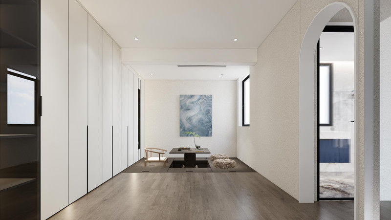 | مخطط الألوان | التشطيب من خشب الجوز الأسود لمنصة التاتامي مع خزانات الفولاذ المقاوم للصدأ البيضاء ، مما يخلق تناقضًا بصريًا مذهلًا. |
