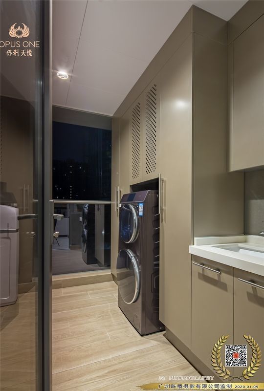 | الأجهزة المتكاملة | مصممة لاستيعاب غسالة ومجفف، وتوفير مساحة وظيفية ومنظمة في حين |