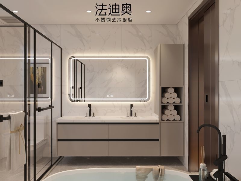 | س: هل تدعم وحدة الحمام الحديثة هذه المصنوعة من الفولاذ المقاوم للصدأ والمتينة والأنيقة الأجهزة المدمجة أو ميزات العرض؟ نعم. تشير الصفحة الحالية بالفعل إلى تكامل الأجهزة ومساحة وفيرة للمناشف ومستلزمات الحمام وغيرها من الضروريات، مع أرفف مفتوحة وخزائن مخفية، مما يساعد فرق المشتريات على الحكم على ما إذا كانت لغة التصميم يمكن أن تمتد عبر الوحدات الطويلة والجزر ومناطق الميزات. |