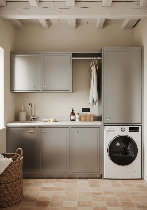 | Q: What cabinet depth is usually recommended for a laundry room cabinet? Recommended depth depends on the room type, circulation width, appliance adjacency, and storage brief. In most premium projects, depth is decided during layout review rather than copied from a catalog, because a better-fitting module plan improves both appearance and daily usability. |