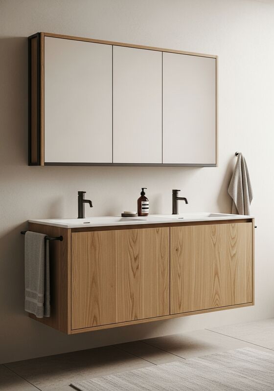 تضع فاديور خزانة الحمام هذه كحل من الدرجة الأولى للمشاريع، مبنية حول هيكل من الفولاذ المقاوم للصدأ بدرجة 304 غذائية؛ قشرة خشب البلوط الياباني الطبيعي (حبوب مستقيمة، تشطيب زيتي غير لامع)؛ ألواح فولاذية مطلية بالمسحوق بلون أبيض مائل للصفرة دافئ؛ إطارات زينة من الحديد الأسود المصنوع يدويًا، حبوب مستقيمة، درجة لون عسل دافئ، تشطيب زيتي غير لامع، نمط حبيبات مرئي ولكنه مقيد، وسطح من الرخام المصقول أو الحجر الملبد ليكون خزانة حمام رئيسية للمساحات السكنية التي تسعى إلى بيئات صباحية هادئة وموجهة نحو الطقوس؛ مناسب للمهندسين المعماريين والمصممين الذين يحددون التصميمات الداخلية بأسلوب الجاباندي أو الحد الأدنى الدافئ. يركز هذا المواصفات على قلب من الفولاذ المقاوم للصدأ 304 مع ألواح أمامية من قشرة خشب البلوط الياباني الطبيعي - حبوب مستقيمة، درجة لون عسل دافئ، تشطيب زيتي غير لامع، تخزين علوي مطلي بالمسحوق بلون أبيض مائل للصفرة دافئ بسطح مسطح بلون قشر البيض - أبيض مائل للصفرة مع دفء أصفر خفيف حتى يتمكن المصممون والتجار ومشترو المشاريع من تقييم الملاءمة والتشطيب ومنطق التسليم بأقل قدر من التخمين.