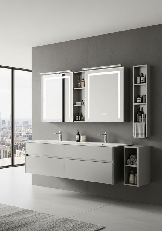 فاديور تضع هذه الخزانة الغائمة في الحمام كحل من نوع المشروع مبني حول جسم هيكلي من الفولاذ المقاوم للصدأ من نوع 304 الغذائي ؛ انتهاء ممشط مع حبة خطية أفقية ؛طلاء الحجارة الخزفية الرمادية المختلطة على الوحدات الطويلة؛ سطح مكتب من الفولاذ المقاوم للصدأ متكامل مع حافة مطوية 4 ملم والزوايا المطوية بلا خلط ، الحبوب الخطية الدقيقة التي تمر أفقياً ، ومراقبة لامعة متطاطية ، صناعية الدقة ،و سقف من الرخام أو الحجر المكسو للخيال في الحمام في الشقق الحضرية، تحويلات الشقق العلوية، المشاريع السكنية على الطراز الصناعي، ومساحات الضيافة المصممة من قبل المهندسين المعماريين التي تتطلب تخزينًا دائمًا ونظيفًا ومكفولًا بصريًا.تركز هذه المواصفات على جسد الفولاذ المقاوم للصدأ 304 مع حبة خطية أفقية ومراقبة لامعة متاهة، حجر البورسلين الرمادي المعتدل الواجهات الوحدة العالية مع مظهر خرسانة نسيج ميكرو 3 ملم بحيث يمكن للمصممين والتجار والمشترين المشروعات تقييم تناسب، الانتهاء والإرسال المنطق مع تخمين أقل.